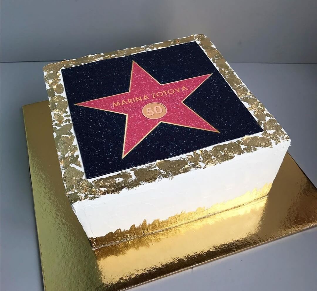 Кратковременно, но ярко и вкусно вы можете увековечить виновницу торжества с помощью нашего тортика в стиле знаменитых звезд на Аллее Славы